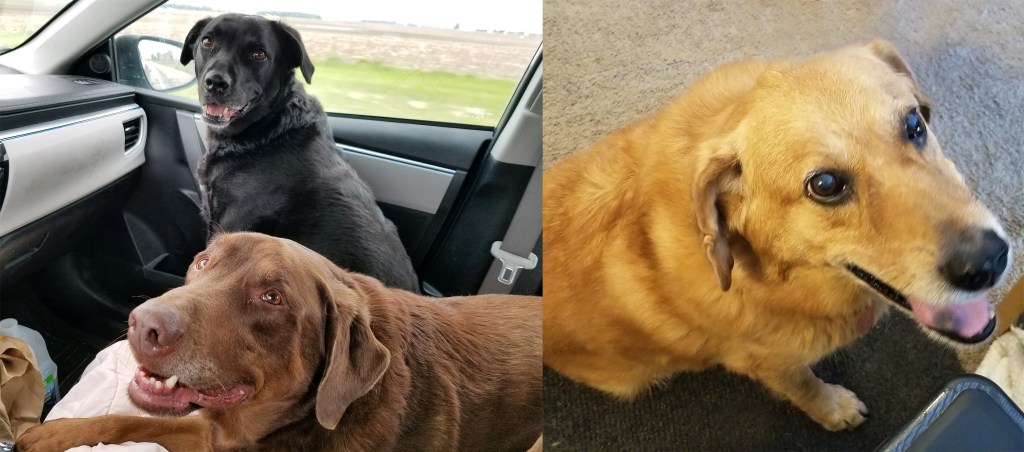 Let me tell you the shortened story of how we became a family with three dogs. My wife and I were newlyweds and, like many couples do, we decided a dog was a good way to start expanding the family. We found a breeder for Labrador retrievers, and when we went to visit the newborn puppies, this chocolate lab pup looked me straight in the eye and rubbed my chest with his paw when I picked him up. I knew he was the right one instantly, and we named him Russ. When Russ was almost one year old, another dog came into our lives. Daisy is a lab mix and has black fur, and she was obviously dumped. She had mites and was severely malnourished, and the first time we took her to the vet, we found out she had a major heart murmur. Two heart operations later, she was irrevocably part of our family, and we consider ourselves blessed to have her. Charlie is our newest addition to the family. He belonged to our wonderful neighbor, who was forced to move to a new home because her life partner passed away. She could not bring Charlie to the new home because of community size restrictions, so we brought him in under the pretense of ‘fostering’. He is a great dog and mixes well with our family. The notion of fostering fell by the wayside quickly!