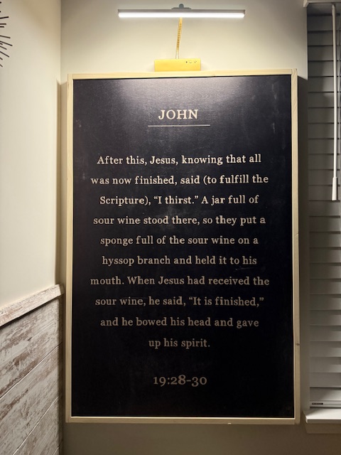 My admiring wife’s smiles turned to frowns when I cussed several times in anger. Tears are welling up in my eyes as I type this devotional while looking at this beautiful picture with Jesus’ last words on it. My Savior suffered an unjust death for me, and for you, and the best that I could muster hovering over the last words of Christ in that moment, was too cuss about a chunk of drywall sticking to the back of our new picture light.